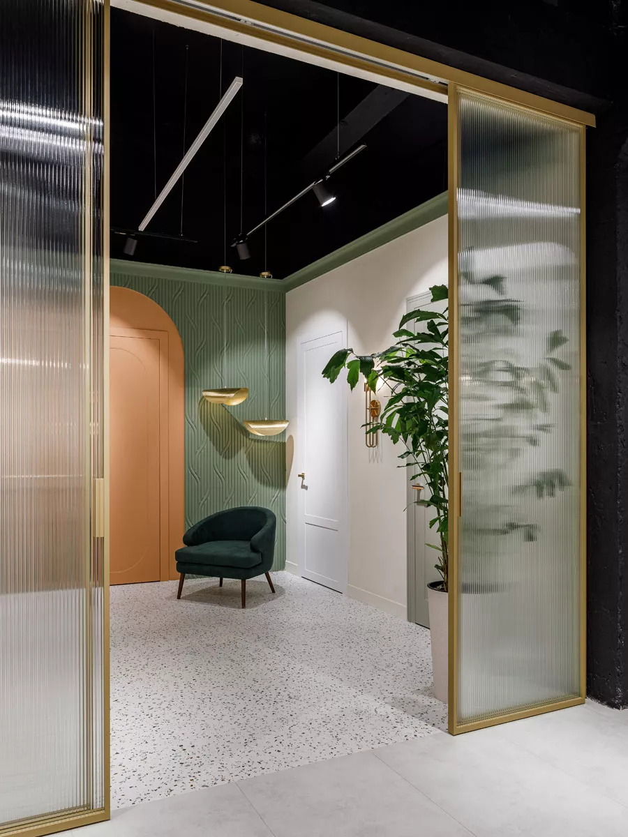 - Под цвет стен: Двери могут сливаться с интерьером, создавая единое пространство (окрашивание двери на заводе по раскладкам NCS или RAL, отделка полотна в идентичный со стеной материал при окрашивании стен, формирование эффекта скрытой двери за счет стеновых панелей в идентичной с полотном фрезеровке).